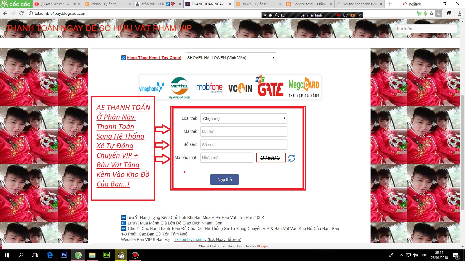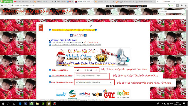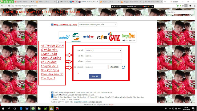 B4:Sau Đó Hệ Thống Hiện Ra Trang Thanh Toán. Và AE Nhập Đầy Đủ Thông Tin Như Hình Nhé. Lưu Ý: Tên Tài Nhận Vật Phẩm Là Tài Khoản Đăng Nhập(Không Cần Mật Khẩu)..!